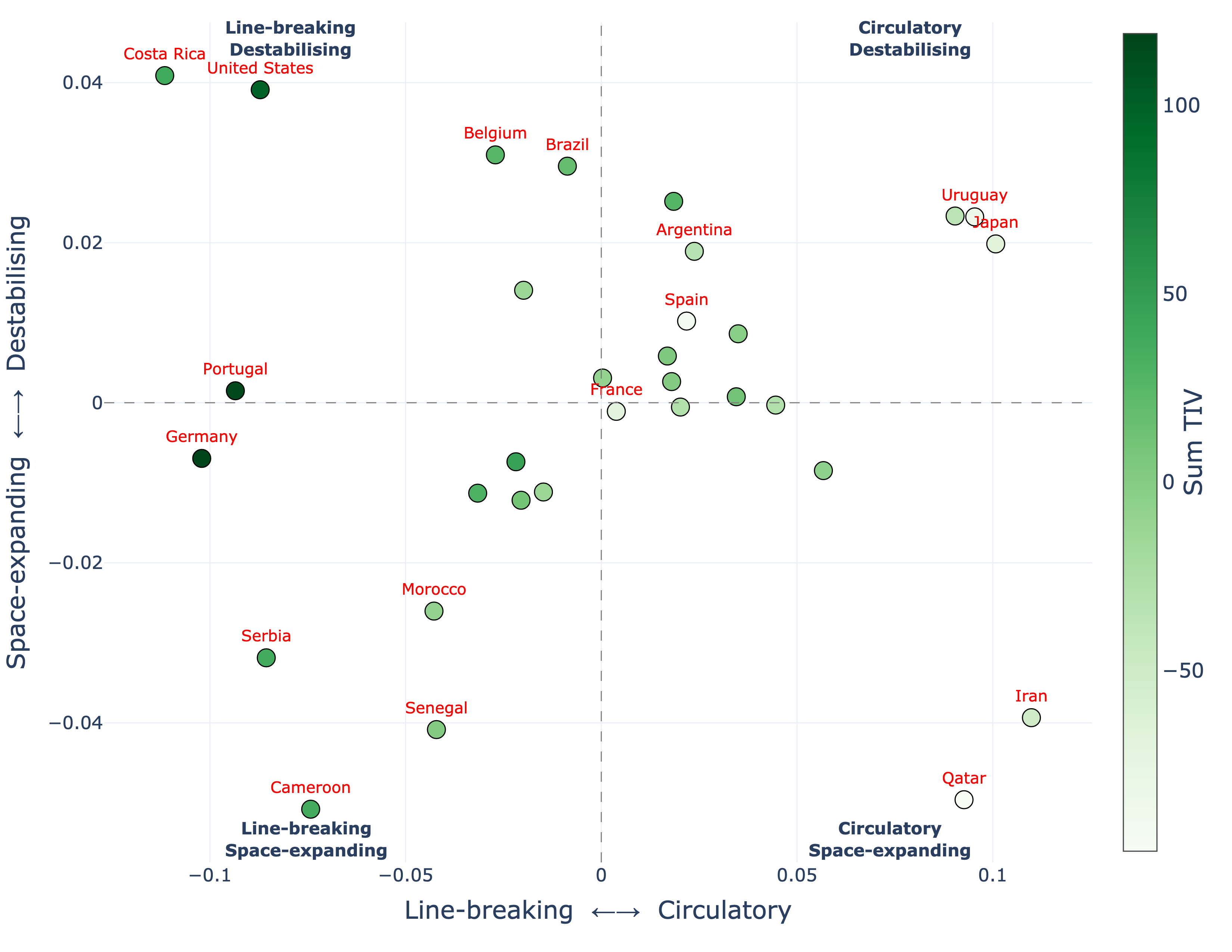 Figure 6: The Structural Style Map. Illustration of the 2022 World Cup teams based on their passing archetypes.